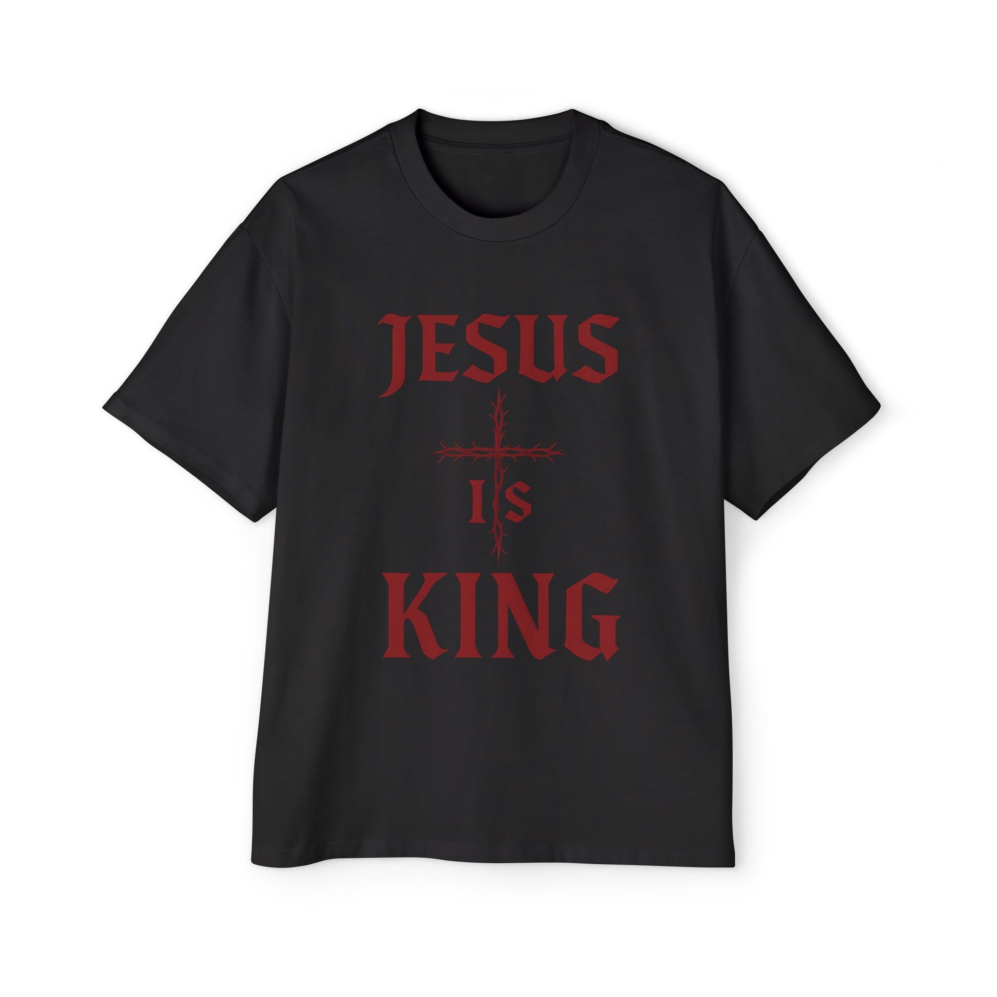 Men's Heavy Oversized Tee - Jesus Is King, Faith-Based Apparel, Comfortable Everyday Wear, Perfect for Church, Gifts for Believers